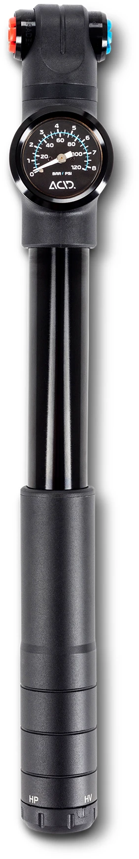 Pression ou volume ? Avec la pompe ACID RACE DUAL, vous avez le choix. Le système de pompe à deux étages vous permet de choisir entre un volume élevé et une pression élevée et, grâce au manomètre précis, vous connaissez toujours la pression exacte des pneus. Cette pompe en aluminium tourné CNC est durable et élégante.