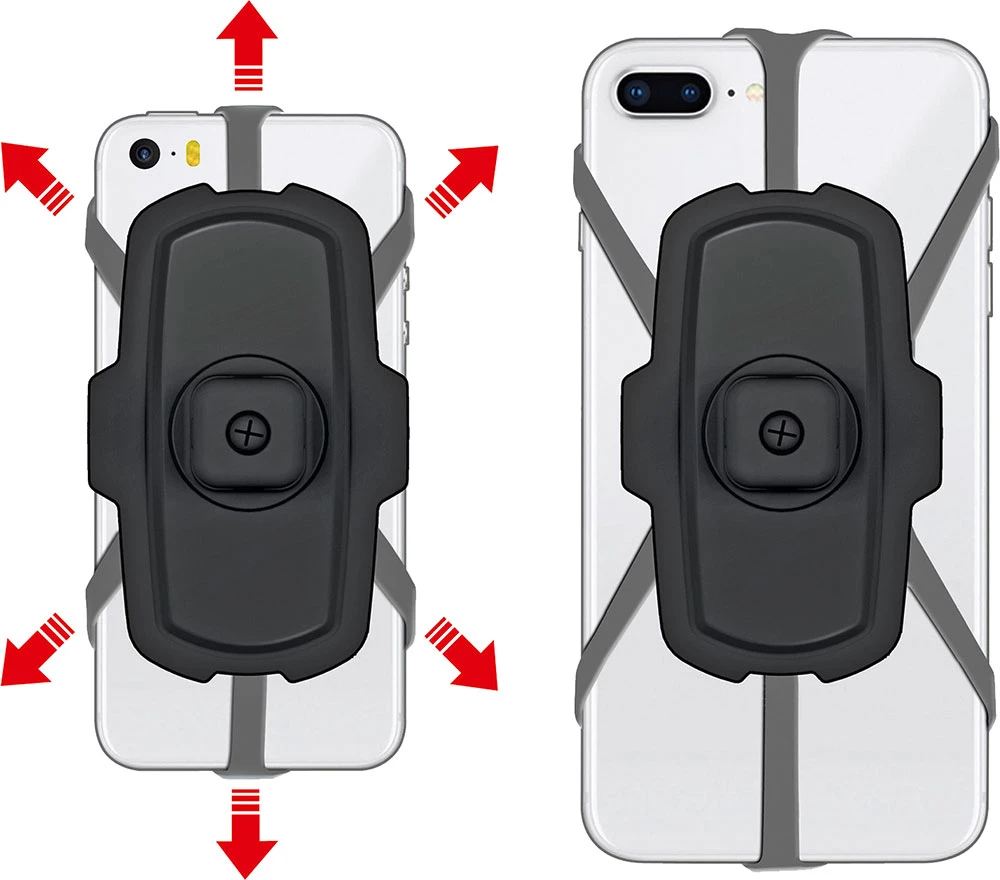 Grâce au support universel pivotant pour smartphone de Rixen&Kaul, ton smartphone est maintenu solidement sur une grande base rembourrée. Les boutons et le port de chargement restent librement accessibles et la caméra n‘est pas dissimulée.