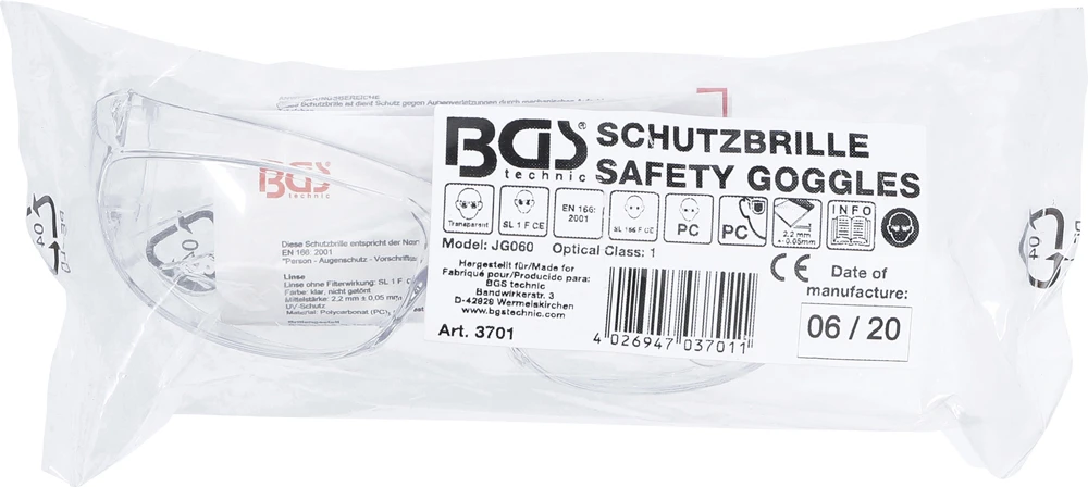 Caractéristiques – Lunettes de sécurité BGS technic | transparent