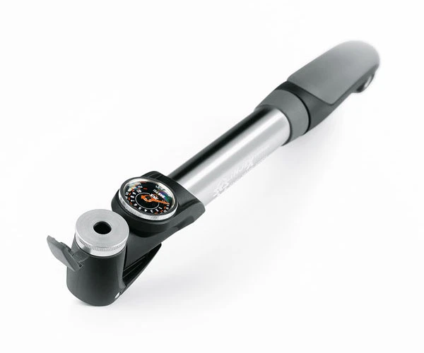 Elle est équipée d’un petit manomètre à l’extrémité du cylindre en aluminium de haute qualité. La tête de pompe intégrée en EVA est adaptée à tous les types de valves. La fonction télescopique et la poignée en T pliable permettent de pomper confortablement jusqu’à 10 bars/144psi.