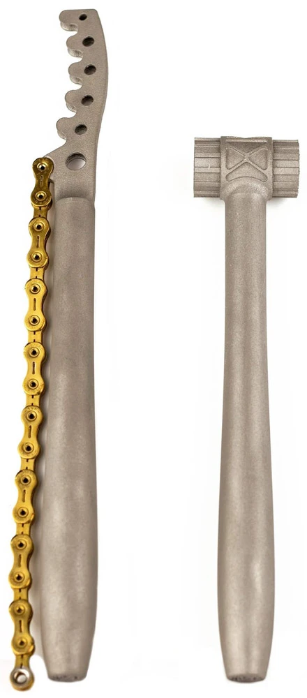 imprimé en 3D en 6/4 Ti trempé, cet outil SILCA pour lockring ne pèse que 45 grammes. La poignée est imprimée à l’intérieur avec des renforts de filetage en forme de spirale inspirés des tubes Columbus SLX, et la tête de l’outil a 2 modèles de clavettes pour accueillir les lockrings Shimano/SRAM et Campagnolo. Bien qu’il ne soit pas aussi dur que l’acier à outils, le 6/4 trempé est plus dur et plus résistant que les aciers utilisés dans de nombreux outils de vélo traditionnels, et est 4 à 6 fois plus dur et plus résistant que l’aluminium utilisé dans les anneaux de blocage haut de gamme. Tout comme le fouet à chaîne qui l’accompagne, cet outil est destiné aux vélos bien entretenus et N’EST PAS compatible avec les barres de triche.