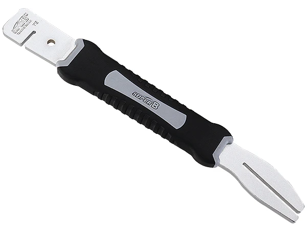 Le TB-MW40 de SuperB est l’outil idéal pour redresser en douceur les disques de frein tordus ou endommagés. Avec ses deux encoches de différentes longueurs et son revêtement antidérapant agréable à saisir, cet outil de redressement offre tout ce qu’il faut pour redresser les disques de frein en toute fiabilité.