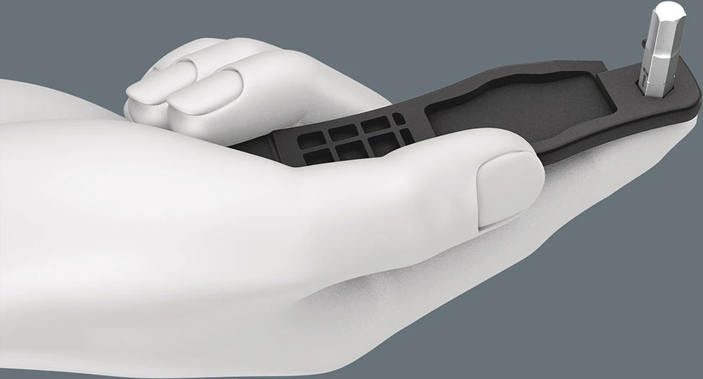 La prise hexagonale 1/4″ du démonte-pneu 9502 permet de fixer les valves françaises sur les parties latérales aplaties. Il est aussi possible d’utiliser un embout 1/4″ pour des vissages simples.